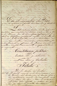 El 4 de Octubre de 1857 es jurada la Constitución Política del Estado Libre y Soberano de Nuevo León y Coahuila. En base a la Constitución Federal del mismo año se establecía que la manifestación de las ideas no puede ser objeto de ninguna inquisición judicial o administrativa, sino en el caso que ataque la moral, los derechos del tercero, provoque algún crimen o delito, o perturbe al orden pública (artículo 6). Se declaraba la libertad de la enseñanza (artículo 3), del trabajo (artículos 4 y 5) y de la libre asociación (artículo 9).