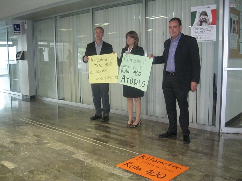 Ante la falta de respuesta por parte de la Secretaría de Medio Ambiente y Recursos Naturales (SEMARNAT) de una denuncia por el manejo de residuos peligrosos y de la queja de los empresarios de la Ruta 400 de que no tienen recursos para renovar las unidades, Diputados de Acción Nacional iniciaron un kilómetro de plata y un "boteo".