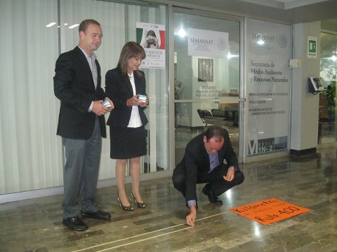 La singular protesta se realizó este jueves por la mañana en las oficinas de la Delegación de SEMARNAT, ubicada en el primer piso del Palacio Federal.