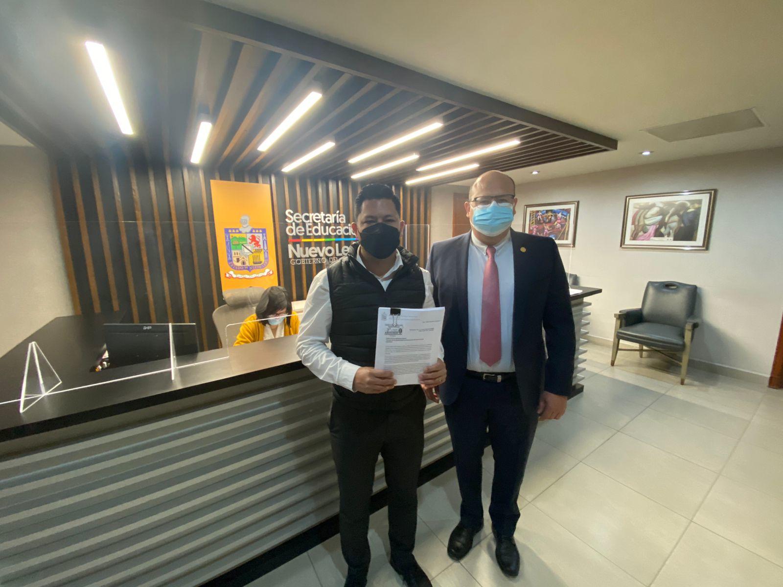 Ante carencias y falta de servicios en 32 escuelas públicas localizadas en Santa Catarina, Guadalupe, Apodaca y Juárez Nuevo León, los Diputados locales de Acción Nacional, Félix Rocha Esquivel y Roberto Farías García entregaron un oficio dirigido a la Titular de la Secretaría de Educación del Estado, Sofía Leticia Morales, mediante el cual demandan arreglar estos planteles educativos, donde estudian más de 5 mil alumnos.