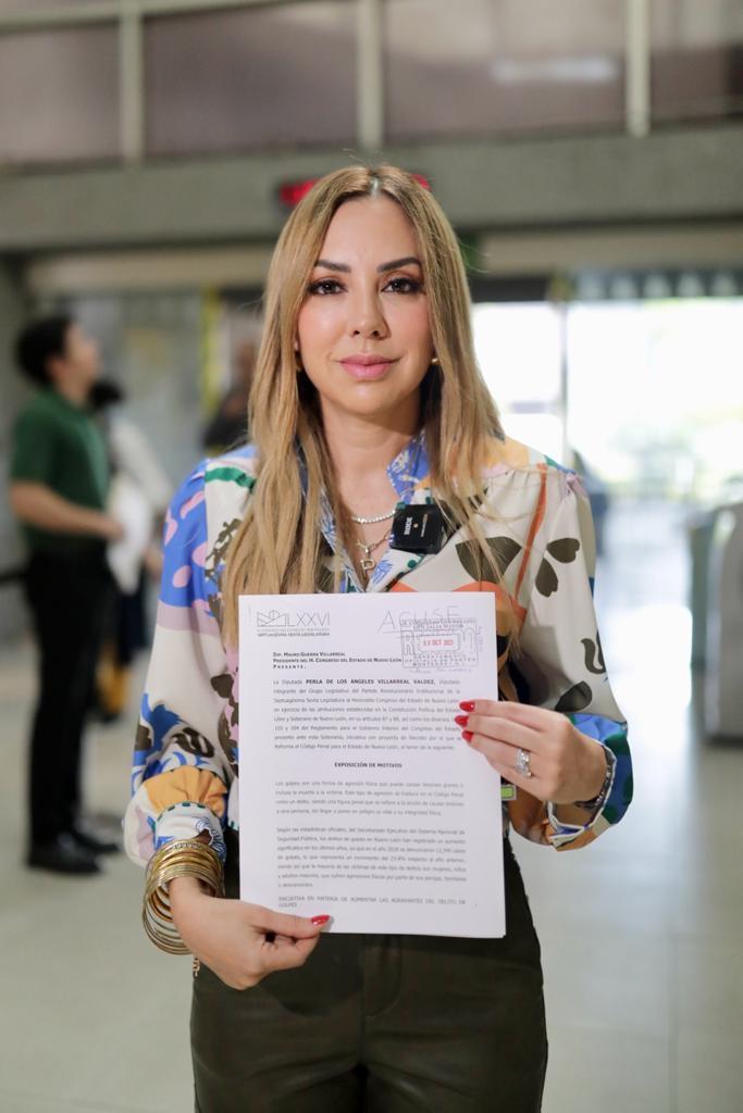 La Diputada local del PRI, Perla Villarreal Valdez presentó iniciativa de reforma al Código Penal para que se aplique una pena de 6 meses a 2 años de prisión y multa de 1 a 20 cuotas a quien cometa el delito de violencia donde haya golpes y en el caso de que la agresión sea de un adulto hacia un menor de edad, la pena se duplique.