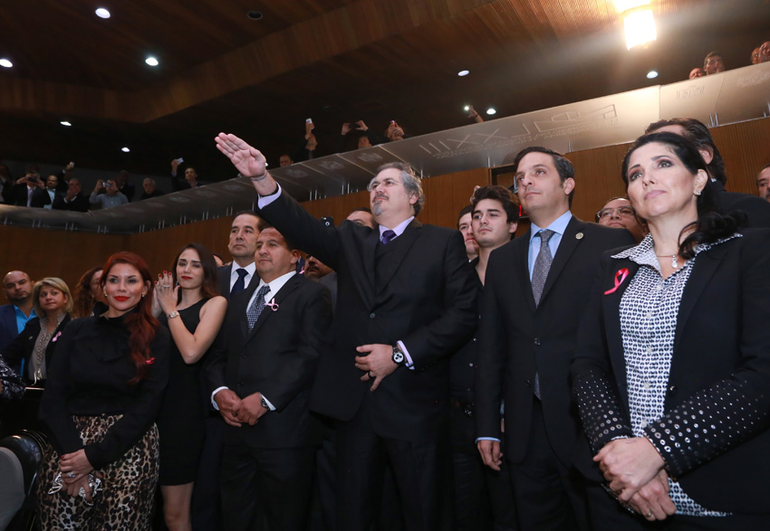 Intervino enseguida, el coordinador de la bancada de Acción Nacional José Arturo Salinas Garza quien señaló algunos de los compromisos que se han planteado en su comparecencia ante los diputados, le pidió su colaboración para la creación de una Fiscalía Anticorrupción con el establecimiento de Sistema Estatal Anticorrupción y le dio su voto de confianza.