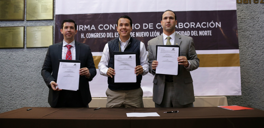 El convenio fue firmado por el diputado Daniel Carrillo Martínez, Presidente de la Mesa Directiva del Congreso del Estado; Marcelo José González Villarreal, Rector de la Universidad del Norte y Ricardo Eduardo Lavín Salazar, Director del Centro de Estudios Legislativos.